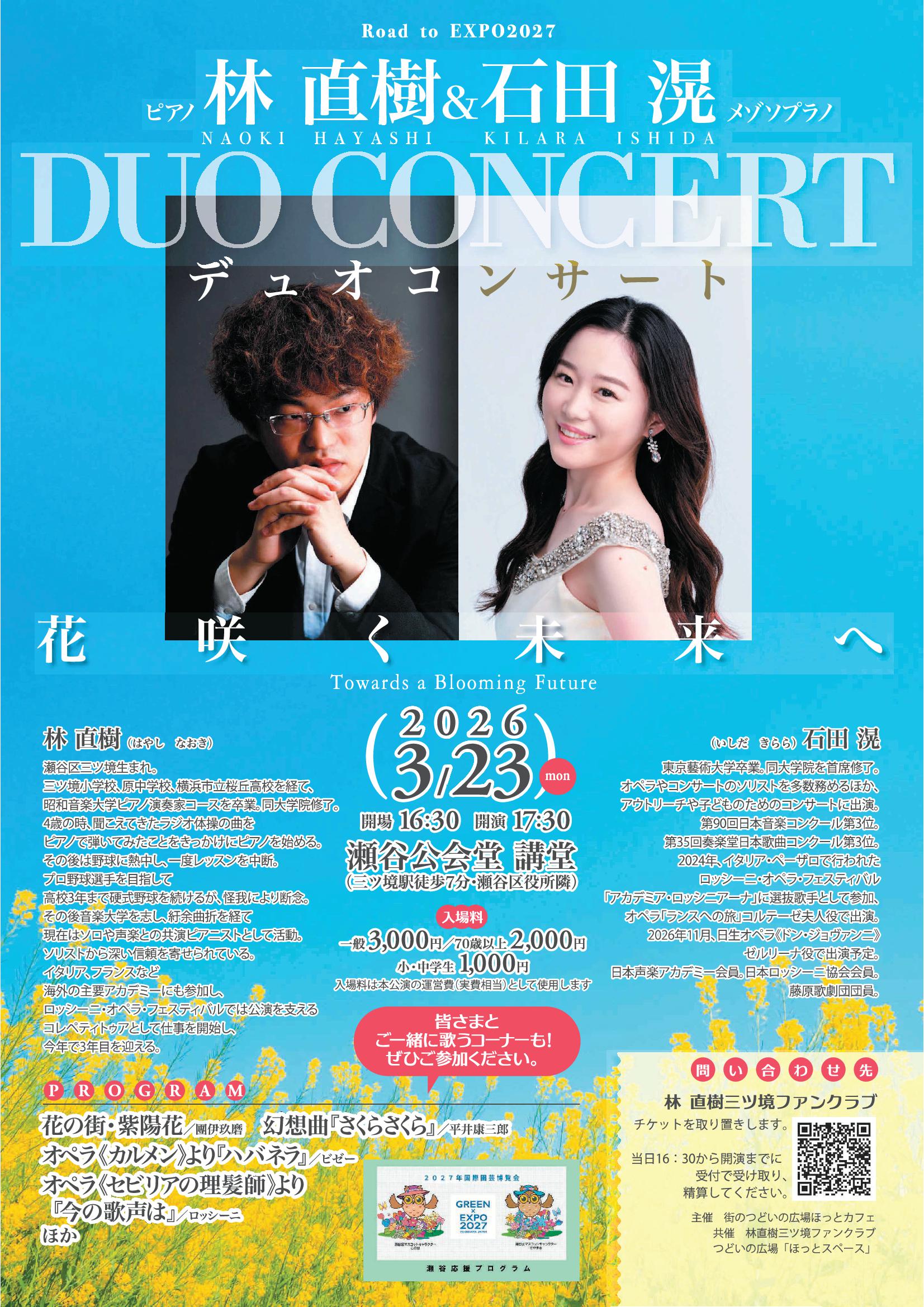 1年後の開催へワクワクをふくらませよう!時間 開演 10時(開場 9時30分) 入場料 無料 問合せ 瀬谷区役所・横浜国際園芸博覧会瀬谷区推進協議会